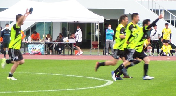 〈사진〉 승리의 환호 - 승부차기에서 이긴 팀 선수들이 감격 하여 달려나가고 있다