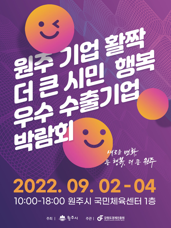 관내 수출기업을 대상으로 처음 개최하는‘2022 원주시 우수 수출기업 박람회’가 9월 2일 원주시 국민체육센터에서 막을 올린다.