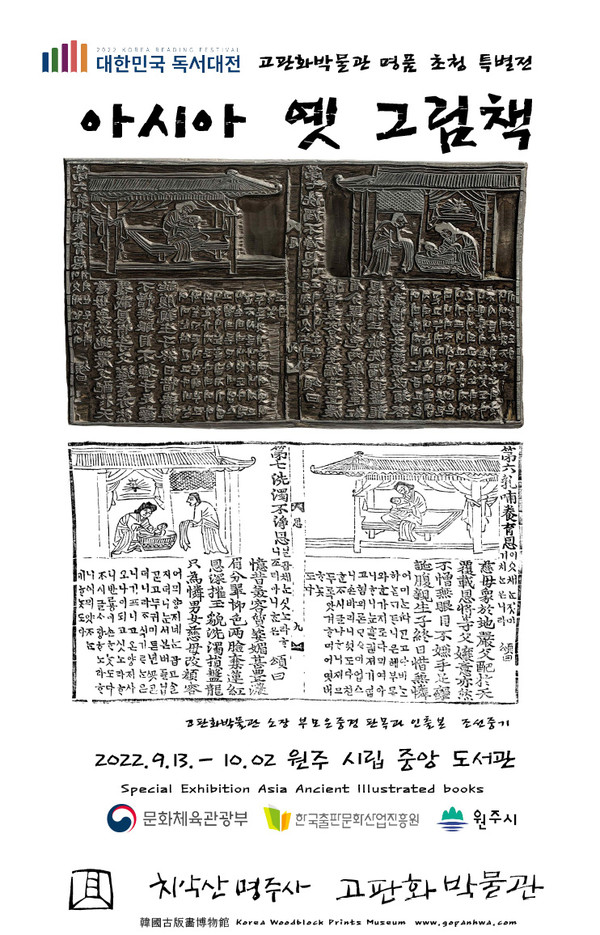 2022 대한민국 독서대전 전시행사의 하나로 진행되는 ‘아시아 옛 그림책 특별전’이 9월 13일부터 10월 2일까지 원주시립중앙도서관 전시실에서 개최된다.