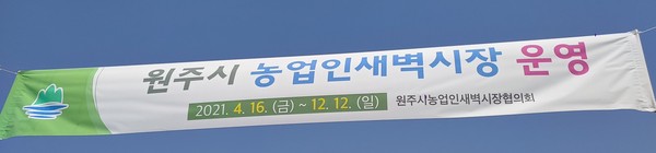 원주시 농업인 새벽시장 협의회 (회장 김운용)는 농업인 소득증대 및 지역 농산물 직거래를 통한 소비자 만족 향상을 위해 1994년부터 매년 새벽시장을 운영해오고 있다.