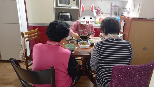 사진제공 :오선민 ▲독거노인 집을 방문하여 식사를 함께 하며 돌보는 모습.