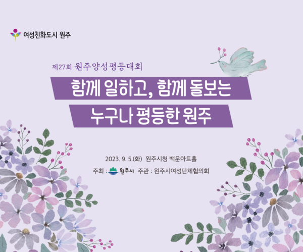 이번 행사는 양성평등주간(9.1~9.7)을 맞이하여 함께 일하고, 함께 돌보는 누구나 평등한 원주”를 주제로 여성과 남성의 균형 있는 발전과 참여를 도모하기 위해 마련되었다.