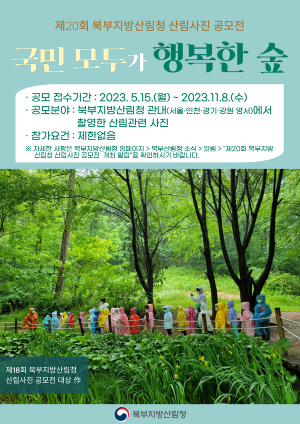 올해로 20회를 맞는 북부지방산림청 산림사진 공모전은 ‘국민 모두가 행복한 숲’을 주제로 11월 8일까지 접수를 진행한다.