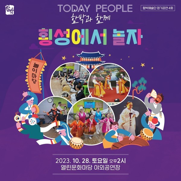 횡성예총이 주최하고, 횡성국악협회 주관, 횡성군이 후원하는 함박예술단 제4회 정기공연 “횡성에서 놀자”가 오는 28일(토) 오후 2시 열린문화마당 섬강 야외공연장에서 열린다.