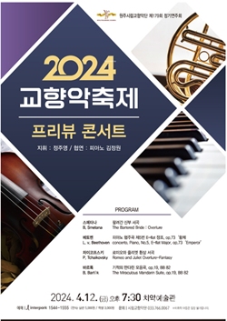 이번 공연은 오는 14일 진행되는 '2024 교향악축제'에서 선보일 곡들을 미리 펼쳐보는 자리로 마련됐다. 정주영 씨 지휘와 함께 ▷스메타나 '팔려간 신부 서곡' ▷베토벤 '피아노 협주곡 제5번 E-flat 장조 op.73 황제' ▷차이코프스키 '로미오와 줄리엣 환상 서곡' ▷바르톡 '기적의 만다린 모음곡' 등을 연주한다.
