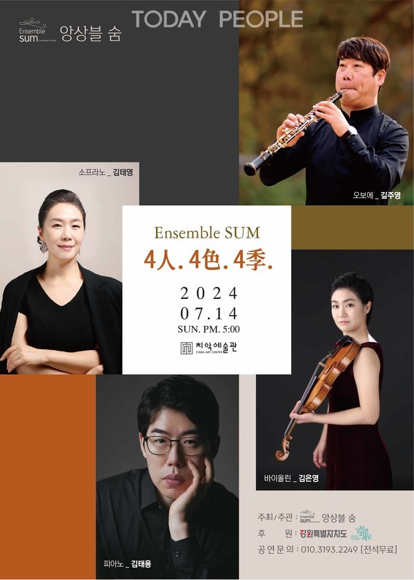 #앙상블 ‘숨’ #앙상블 숨 #연주회 ‘4人. 4色. 4季.’ #4인의 연주자가 선보이는 사계절 #오보이스트 길주영 #소프라노 김태영 #바이올리니스트 김은영 #피아니스트 김태용 #14일 오후5시 치악예술관