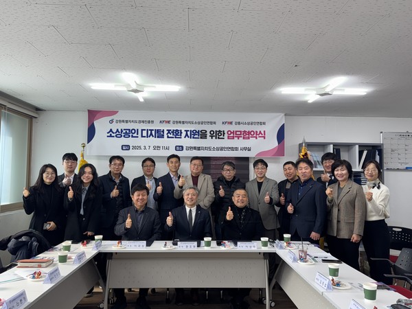 도경제진흥원장(원장 권오광), 도소상공인연합회(회장 이극상)과 강릉시소상공인연합회(회장 이상무)는 도내 소상공인의 디지털전환 지원을 위한 업무협약을 3월 7일 체결하였다.