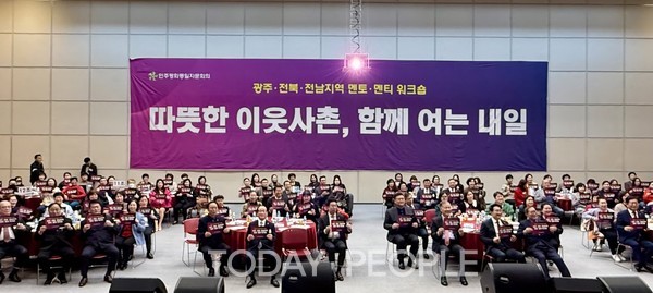 민주평화통일자문회의 광주지역회의(부의장 강현구)는 3월 28일(금) 14시 김대중컨벤션센터에서 광주·전북·전남 지역회의를 대표하여 전남·광주·전북지역 멘토·멘티 등 130여명이 참석한 가운데 『따뜻한 이웃사촌 멘토 멘티 워크숍』이 성황리에 개최되었다.